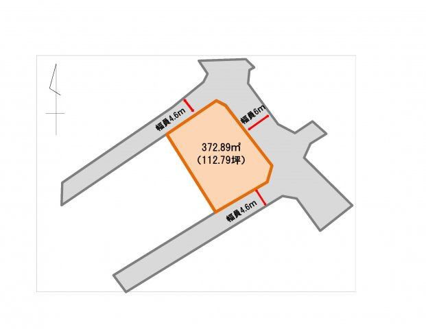 | 接道状況 | 三方 (北東側 私道6.0m) (南東側 私道4.6m) (北西側 私道4.6m) | ||